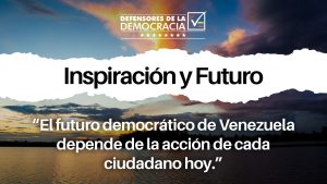 Defensores de la Democracia es una plataforma ciudadana orientada desde el 2020 hasta el 2024 a promover la realización de elecciones libres, justas y verificables, a través de procesos de formación, organización y activación de la ciudadanía dentro y fuera de Venezuela, con el propósito de rescatar la democracia en el país.